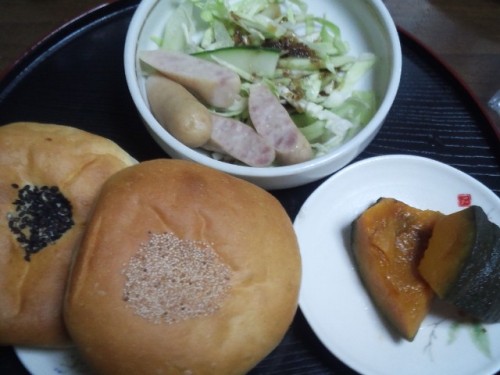 沢山のパンありがとう。友人がパン屋を開店です。そのお店から届いた一部が今朝の朝食に・・・中はあんこが一杯・・・・あらま知らなかった。紅茶とサラダで食べました。美味しいね。