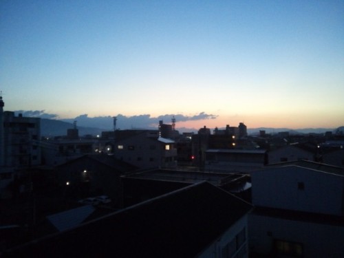 窓から見える夜明けです。今日は天気になりそうですね。涼しい朝です。秋のような気配です。虫の音が聞こえます。今朝の食事です。朝はあっさりですね。皆さんの朝ご飯の献立は何を召し上がりましたか?
