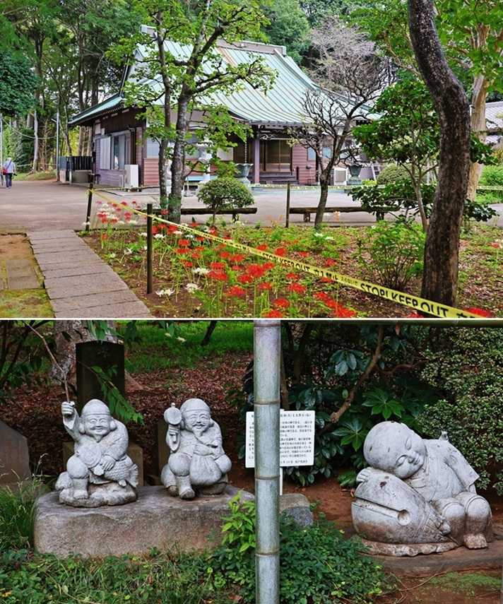 松戸七福神の恵比寿と大黒天の石像が置かれている。京成線・ 常盤台駅