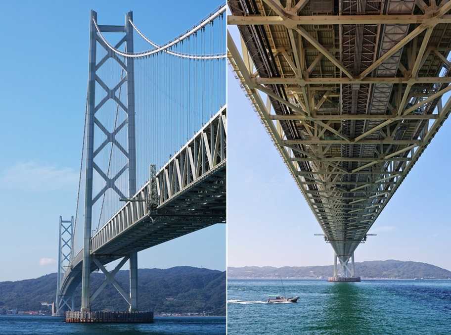 潮流激しい明石海峡に、世界一の長さとなる つり橋 が完成したのは1998年。その際今から70年に、夢を語った人がいて、その思いを受け継いで完成させた国家プロジェクト。困難な工事を通じて、多くの革新技術が生まれた。橋の諸元は、最大支間長さ1991m、主塔の高さ300m。現在トルコのチャナッカレ橋がつり橋では世界一。