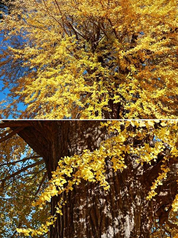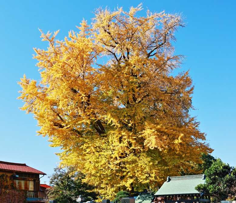 大きなイチョウ(雌株)は、沢山の葉と実を付けるので境内の掃除が大変だろと思う。樹高いので、黄葉と実の落ちる時期が異なるので、長期に渡る片付け作業となる。熟した実からは、独特の臭いがするので、保管にも苦労すると思う。銀杏( ギンナン )は、揚たり、蒸して食べると美味しいが、手間がかかる。
