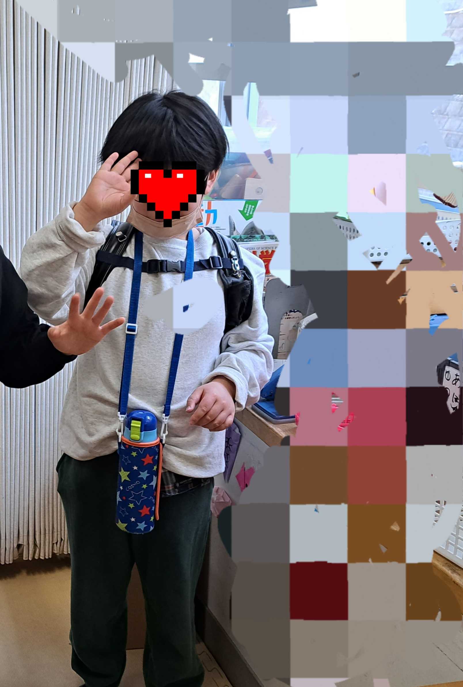 お立ち寄りありがとうございます。息子(小4)、娘(小2)ともに、知的障がいを伴う自閉症支援級在籍2月下旬に、息子と、娘がインフルエンザになり、自宅療養になりました。2/24~学校に通っています。やれやれ┐(-。-;)┌と思いきや、3/5(日)にまた発熱🤒熱は1日だけでしたが、その後、吐き気があり、固形物がとれなくなります。翌日、小児科で薬を処方してもらい、軽快。6日は、2人とも学校を休みましたが、7日は、息子のみ、お休みしました。(旦那、6日はリモート!7日はたまたま年休を取っていました)7日は、テレビを独占する娘がいないので、息子は、テレビでYouTubeを楽しそうに見ていました😊吐き気は徐々に治まって、7日からお握りが食べられるようになりました。8日(水)から学校に行ってもらうことに。その日は給食が終わったら下校です。しかし、朝、息子から「具合が悪い。熱が出そうだから、学校お休みする。」と、初めて学校行きたくない宣言が!😳どうみても、元気そうです🤔。朝ご飯も全部食べました。昨日の楽しそうな様子をみていると、怠けグセの可能性が!息子へ「熱が出そうでは、休めないよ。」と伝えると、「わー😫」と声をあらげます。本当に学校に行かない雰囲気だったので、息子に「先生に熱が出そうだから休んでいいですか?って聞きに行こう!」と言うと、息子、「熱が出そうだから、休んでいいですか?って聞いてくるー❗」と納得して、機嫌良く家を出ます。学校につくと、担任の先生のところに、一目散!「熱が出そうだから、休んでいいですか?」って聞いてます😅連絡帳に詳細を書いてきたので、先生に読んでもらいます。先生から「休めません」と言われて、「わー」となり、私の腕を引っ張って、下駄箱に連れていき、靴に履き替えて帰ろうとします☹️先生が「今日休んでも、テレビは見れませんよ。コンセント抜いてもらいます。大人しく寝ているだけだよ!」と言うと、ちょっと考えてから、自ら、また上履きに履き替えました😁教室に戻ってからも、泣き顔で🥺自分の気持ちを落ち着かせようとしているのでしょう。「敬礼する!写真撮る!」と言うので写真を撮りました😁5年生の女の子が、一緒に写ってくれました😄その後もごちゃごちゃ言っていましたが、先生から帰って良いとの合図をいただいたので、お任せして引き上げてきました。今日は、給食食べたらお迎えなので、頑張れ✊‼️息子❗ふうー😩朝から、一仕事終えた感じです。気分転換に、そのまま朝マック🍔🍟ソーセージマフィンのセットとひとくちチュロスをオーダー🧡割ってみると、中はチョコレート❣️揚げたてを出してもらいました😆あつあつ、サクサク、中、とろり💖🥰美味しかったです🥰すっかりモヤモヤ消失🌈13時に迎えにいくと、機嫌よく、廊下を行ったり着たりしている息子を発見!朝、私が帰った後はいつも通りに過ごせたとのこと。思いきって、先生にお任せして良かったです😊その日以降、行き渋りもなく、学校に通えています。体調不良で学校をお休みした時の家での過ごし方も、気をつけないといけないですね。YouTube見せ放題は絶対やめようと思いました😅お読みいただきありがとうございました😊