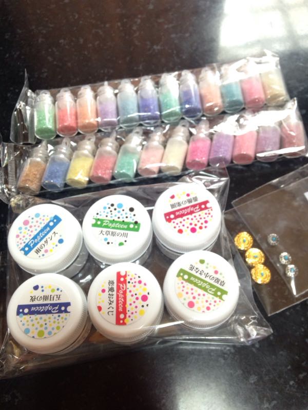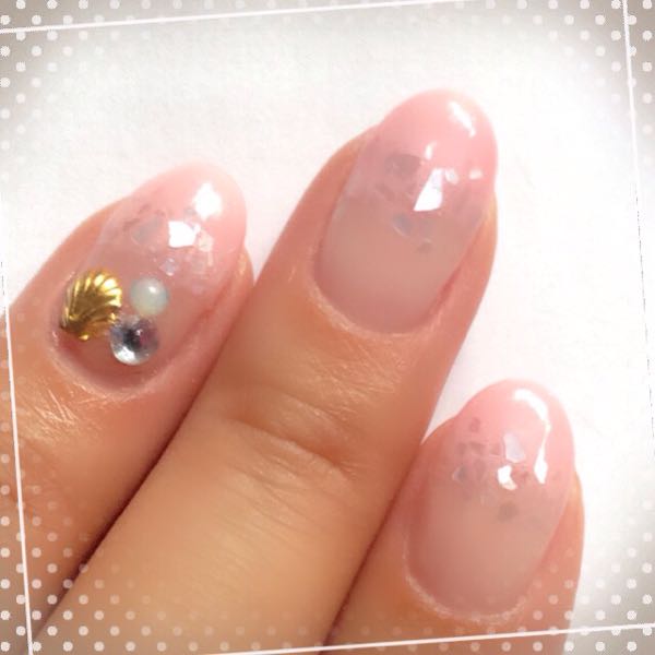 ネイル工房さんでお買い物(∪^ω^) クラッシュシェル(微粒子)、ジェル、コンチョ2種類。 試しに人差し指に乗せてみました。 ステキだけど‥ 職場ではどうかなー(´・ω・`) 最近のネイル お友達ネイル