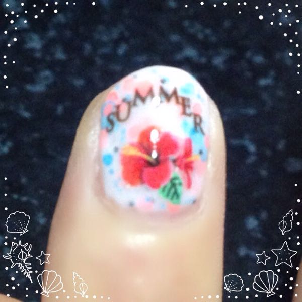 夏季休暇中のネイル(∪^ω^) 今はハイビスカス柄です 先日うなぎを食べに行きました!