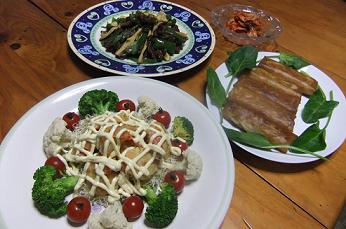 最近、料理雑誌で、「サブジ」という料理を見るので、作ってみたのがこちら「かぼちゃとオクラのサブジ」その時のレシピにしょうが小さじ2とあったので、その分量で作りましたが、ちょっとしょうがが効き過ぎでした~本場のは、色んなスパイスを使用するのでしょうが、簡単に自宅にあるものという事で、カレー粉を使用しましたが、これは、結構、好みです~「サブジ」というのは、インドでは、「野菜の蒸し煮」、「炒め煮」の事をいうようです~もっと、色んなお野菜で試してみたいと思いました~かぼちゃ&オクラの使用量は、250g、40gです本日の「コブサラダ」「コーン」「ブロッコリー&カリフラワー」「紫キャベツ」「サラダ用ほうれん草」「トマト」「アルファルファ」「アポカド」を使用しました今日のお野菜の使用量、これだけで、440gも~勿論、私一人では食べれませんよ~三人で食べました~「ブロッコリー&カリフラワー」を去年の年末に懸賞で当選した「シリコンスチーマー」を使用して、蒸しました~レンジでチンするよりも、ふわっと仕上がり、お野菜の旨味が出ますよ~もっと、早く使用すれば良かったのですが、ハワイ旅行行っちゃって、忘れてました~↑の「サブジ」も作れますね~「舌平目のソテー」生協さんから届いたので、早速、焼きました~付け添えのお野菜、「スナップエンドウ」、「シメジ」、「エリンギ」、「舞茸」を使用しましたが、総量140g(3人分)でした味付けは、胡椒、クレイジーソルトで↑のプレートは、息子が食べたもので、私は、一切れで十分~お野菜の量を計ってみると、我が家は、一食で、一日で食べた方が良いとされてる野菜の量をほとんど食べてる事に~私が独身時代は、お肉好きだったのもあり、お肉中心で、サラダなんか、毎日は食べてなかったです~二十歳の頃なんて、今よりも16kg太っていて、ぷくぷくでしたし~長崎の女子高時代の同級生が、卒業して再会した際に、痩せた私を最初は、びっくりして見たくらい~高校時代って、学校の帰り道に、友人とお好み焼きとかパスタとか、何か食べて帰り、また夕食もしっかり食べてましたからね~1日4食、太らないのが可笑しいかな息子が、今、そういう年頃で、恐ろしいくらいの食欲です~昨日は、雪も散らついた千葉ですが、今日は、何とか買い物に行けそうです~皆様も暖かくしてお過ごしくださ~い~にほんブログ村 いつも応援して頂き、感謝しておりますとても励みになりますので、ポチをどうかよろしくお願いします~