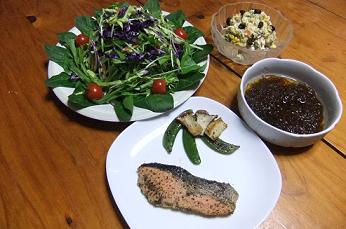 昨夜は、頭痛が酷く、皆様のところへ訪問ができず、ごめんなさい~ちょっと、肩コリがしていたので、頭痛の予感もありましたが、気付いた時には遅く、がんがんと襲ってきましたので、早目に寝ました~朝、起きると大分、治まってるから、更新しました~千葉のお野菜が問題になり、昨日、お昼に近所の小さいスーパーに行きましたが、やはり、問題の千葉産のお野菜は撤去されてました~でも、他県産のお野菜は並べられてましたよ~店内は節電の為、暗く、冷蔵コーナーも、かなり冷気が少なく感じました~停電がある為、アイスクリームは全く売られてませんこちらのスーパーは、納豆、水、カップ麺売り場は、全く、商品なかったです...ヨーグルトは、数えるくらいは売られてたので、カルシウム補給に1パックだけ買ってきました~停電が回避される週末だけのお楽しみみたいな商品となりました~昨夜は、パパが泊まりの仕事前なので、野菜不足解消にてんこ盛りサラダを作り食べさせました~「鮭のバジルオリーブ(生協)」「さつま芋サラダ」「野菜サラダ」「もずく酢」です生協の「鮭のバジルオリーブ」、鮭にバジル風味の味付け、オリーブオイルも沁み込ませてあるので、フライパンで焼くだけで仕上がるので、ラクちんです「さつま芋サラダ」に、レーズンも加えて、鉄分補給しました今朝の新聞で、千葉の浄水場からも、放射性ヨウ素が採取された為、配水を停止、他の浄水場からの配水となったみたいです水は、やはり、生きていくためには、必要ですからね...海水に放射性物質が検出され、漁師さんが今度は風評被害をご心配されてるとのこと...私も大の魚好きなのもあり、魚が売られなくなったらどうしようとかなり心配してます~原発で、命かけて、作業されてる方々も大勢いらっしゃるので、今は、願うのみです...にほんブログ村 いつも応援して頂き、感謝しておりますとても励みになりますので、ポチをどうかよろしくお願いします~