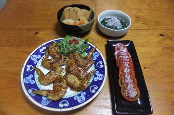 お肉料理をしばらく作ってなかったので、息子とパパの為にこちらを~昨夜の晩御飯「鶏の手羽先グリル焼き」「トマトサラダ」「モロヘイヤとめかぶの和え物」「煮物」です~「鶏の手羽先グリル焼き」をズーム~これは、勿論、パパと息子が各自一皿を完食です~魚グリルで焼いたので、余分な脂が落ち、美味しいと、二人はもくもくと食べてましたよ~私は、こういう骨付き肉がどうも苦手で食べれません~鶏様のお肌のぶつぶつも、どうも触るのが~本当は、「バファローウィングチキン」を作りたかったのですが、息子が辛いのが苦手で~でも、息子に話したら、食べてみたいというので、次回こそは作ってみたいです~そうそう、京都在住のcageさんにブログのキリ番のお返しで頂いてから、愛用しているこちらの唐辛子、パパと私はかなり気に入ってます~一味なので、かなり辛いですが、ほのかなゆず胡椒の風味がたまらないんです~↑の手羽先にもかけて、パパは食べてましたよ~さすがに、お野菜が寂しくなりましたので、これから買い物に行ってきま~す~お肉とお魚は、生協さんから届くので、自分では、野菜しか買いませんが、最近、新種のお野菜を見かけないので、寂しいです~にほんブログ村 いつも応援して頂き、感謝しておりますとても励みになりますので、ポチをどうかよろしくお願いします~