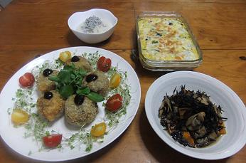 茄子好きな私は、茄子のコロッケを作りました~昨夜の晩御飯「茄子のコロッケ」「ひじきとあさりの煮物」「しらす大根」「鮭と野菜のフラン」「茄子のコロッケ」をズーム~「茄子のコロッケ」をカットしたところ~焼き茄子に田楽味噌が合うので、こちらのコロッケにもかけましたが、味噌がくっついて、中の様子が分かりづらいですね~はんぺんも加えたので、ふわふわですよ~茄子の甘みとチーズがじゅわ~っと~息子もパパも、美味しいと気に入って食べてくれました~「茄子のコロッケ」「鮭と野菜のフラン」は、紅鮭が1匹冷凍庫に残ってたので、在庫整理を兼ねて、作りましたが、こちらも、鮭の旨味が加わり、いつもの野菜だけのフランよりも美味しく仕上がりました~「ひじきとあさりの煮物」は、むきあさりが生協から届いたので、一緒に煮込み~先日、作った「ケーキサクレ」も楽天レシピに登録しました今日は、楽天ブログのメンテナンスで、なかなか更新ができず、疲れました~しかも、朝から、蒸し暑~い~また、猛暑が戻ってきたみたいです~皆様も、体調管理には、くれぐれもお気をつけてお過ごしくださ~い~にほんブログ村 いつも応援して頂き、感謝しておりますとても励みになりますので、ポチをどうかよろしくお願いします~