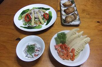 昨日、買い物に行くと、「スティックセニョール」を見かけたので、早速料理しました~昨夜の晩御飯「帆立のカルパチョ」「豚バラ肉のスティックセニョール巻き」「生春巻き」「彩り野菜の白和えと野菜サラダ」です~「彩り野菜の白和えと野菜サラダ」をズーム~久々に登場した「ミニキャロット」ですが、野菜好きの我が家は、生のままボリボリとうさぎさんのように食べました~何と、パパは、最初に食べ始めたのが「ミニキャロット」で、息子も、「甘くて美味しいね~」ですって~白和えには、「赤、黄、朱色のカラーピーマン」「玉ねぎ」「コーン」「人参」「モロッコインゲン」を使用しましたが、冷え冷えにして食べたので、食べやすかったですよ昨日、買ってきたお野菜様~「スティックセニョール」「ミニキャロット」「モロッコインゲン」「ミニオクラ」です久々に「ミニキャロット」様に出会えて、かなり嬉しい~「ミニオクラ」は、高知産のものですが、本当、長さが3cmくらいのミニサイズなので、きっと飾りに使用したら可愛いですよ~「スティックセニョール」は、別名茎ブロッコリーと呼ばれていて、美肌効果に加え、がん抑制、貧血予防なんかも...ブロッコリーが苦手なパパも、これは食べるんですよ~肉を巻いてるからかしら味付けは、クレイジーソルト、胡椒のみですこの週末、パパが急な泊まりの仕事になり、月曜日まで帰りません~泊まりの仕事になると、準備が大変ですが、ご飯の支度が息子と二人だと、食べたいものも作れるので、ちょっと、嬉しいかも~皆様も、とてもお暑いですが、お体にはお気をつけて、素敵な連休をお過ごしくださ~い~にほんブログ村 いつも応援して頂き、感謝しておりますとても励みになりますので、ポチをどうかよろしくお願いします~