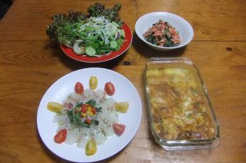 昨日も、暑さが激しく、カンカン照りでしたが、頑張って主婦はご飯作りしなくてはならないのが、とても大変ですが、作りましたのがこちらの晩御飯「真鯛のカルパチョ」「野菜のフラン」「野菜サラダ」「アマランサスと紅鮭のマヨ和え」です~「真鯛のカルパチョ」をズーム~週末なので、ちょっと豪華に愛媛産の真鯛を買ってきましたが、暑い時は、こういう冷え冷えの料理があると、涼しげで良いですよ~バジルドレッシングをかけて頂きました~「野菜のフラン」、色がちょっと焦げた感じですが、なんと、魚グリルでやいてみたんですよ~只今、実験中なので、レシピは載せれませんが、卵・牛乳・お野菜に粉末高野豆腐、砕いた干しエビも加えてますが、レシピは、もう少しお待ちくださ~い~「アマランサス」という青菜ですが、こちらです栄養価は、生葉100g中、鉄分8.9mg(トマトの14倍、キュウリの18倍、ホウレンソウの2.4倍)カルシウム410mg(トマト の41 倍、キュウリの32倍、小松葉の1.4倍)ビタミンC64(トマトの2.5倍、キュウリの4倍)たん白質4.6g(トマトの4.6 倍、キュウリの5.8倍)あるそうです~これは、せっせと食べなくては~今回は、紅鮭とマヨで和えましたが、紅鮭が思ったよりも、塩分があったので、塩は不使用です~アマランサス自体は、癖はなかったですよ~「アマランサスと紅鮭のマヨ和え」長崎の母に昨夜、電話したところ、トマトを毎日父と食べるようにした~というではありませんか~母は、野菜は割と食べてるようですが、父が野菜嫌いで、以前、シーズー犬を飼ってた時も、里芋の煮付けを犬に食べさせて、自分は一切れも食べないんですよ~両親とも、高血圧で、薬を飲んでますが、私としては、もっと、野菜を食べるようにすると、血圧も安定するのではないかと思っていたんですよ~長崎なので、遠くて、なかかな帰省できないので、毎日の電話は欠かせません~今週もよろしくお願いしま~す~にほんブログ村 いつも応援して頂き、感謝しておりますとても励みになりますので、ポチをどうかよろしくお願いします~