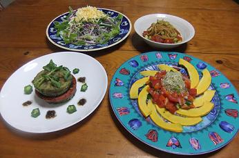 ここ数日は、パパと息子が食べたいものを作ったので、たまには、自分が食べたいものにしましたよ~昨夜の晩御飯「タコライス」「ズッキーニのツナマヨ焼き」「長芋とオクラのサラダ」「カポナ―タ」です~サラダみたいにお野菜たっぷりのタコライス、写真のは私が食べたものなので、ご飯はかなり少な目なんですが、野菜たっぷりの盛りがたまらないです~「長芋とオクラのサラダ」にも、2色のミニトマト使用で、「カポナ―タ」も、ミディトマト5個も使用しました~パパも息子も、トマト好きなので、喜んで食べてました~「タコライス」「ズッキーニのツナマヨ焼き」先週の土曜のランチですこの日の「バジリコ」ですが、松の実がなかったので、ピーナッツ&胡桃で作りました~私が食べたのをズーム~全然、美味しく食べれました~「バジリコ」今日は、曇っていて、かなり涼しい朝です~先日から、どうしても欲しい商品があり、お出かけしてきま~す~にほんブログ村 いつも応援して頂き、感謝しておりますとても励みになりますので、ポチをどうかよろしくお願いします~