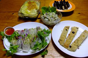 昨日は、パパもお休みでしたが、夜勤明けで帰宅後、夕方まで爆睡、息子は部活の友達とカラオケ、私は、家でのんぴり過ごしてました~昨夜の晩御飯「茄子、トマト、サボイのチーズ焼き」「ムール貝パターガーリック蒸し」「生春巻き」「アボカドとミックスビーンズサラダ」「チャパタ」です~「茄子、トマト、サボイのチーズ焼き」を切り分けたところ~ちょっと、暗くて見えづらいですね~揚げた茄子とスライスしたトマトと簡単ミートソースの間に予め茹でておいた「サボイキャベツ」の葉をサンドしてみました~「サボイキャベツ」が淡白な味なので、茄子とトマトにしっかり絡まり、美味しかったで~す~「茄子とトマトのチーズ焼き」「アボカドとミックスビーンズサラダ」に、今回は、こちらの商品も味付けに使用してみました「マスコットフーズ株式会社」さんの「サラダエレガンス」です「シチリア産岩塩」「チリパウダー」「胡椒」etcと色んなスパイスがミックスされてますが、岩塩がとても良いアクセントになり、いつもの味よりも、コクと旨味がupされた感じで、マヨの味も邪魔していないので、なかなか気に入りました~これ一つで、味が決まるというのは、ちょっと、嬉しいですね~炒飯にも良いらしいので、次回、使ってみたいと思いま~す~「アボカドとミックスビーンズサラダ」右手前のパンは、レシピブログでかなりお世話になっているRuneさんから教えて頂いた「チャパタ」ですが、久々に作りましたよ~オリーブがなかったので、「ドライフルーツミックス」「乾燥オレガノ」「くるみ」を使用しましたが、何度食べても、美味しい~Runeさん、いつも素敵なレシピを教えて頂き、ありがとうございます~昨夜は、皆様のコメントにご返事できず、すみません~夕方まで寝てたパパですが、息子もカラオケからなかなか帰らないので、二人でワインを飲み、でも、ほとんど私が一人で飲みましたが、パパは、バーボンも買ってきていて、ついつい飲み過ぎて、私だけ早く寝ちゃって~二日酔いはないですよ~ワインは、大好きなお酒なので、フルボトル1本飲んでも、平気~でも、日本酒は全く飲めません~今週もよろしくお願いしま~す~にほんブログ村 いつも応援して頂き、感謝しておりますとても励みになりますので、ポチをどうかよろしくお願いします~