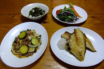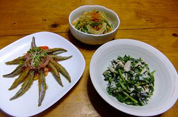 連日、残暑が厳しいですが、野菜と海の幸を組み合わせたお料理を作りました~昨夜の晩御飯「びんちょう鮪のめかぶ和え」「茎わかめとあさりの炒め物」「かぼちゃとインゲンの煮物」「明日葉のお焼き」です~「茎わかめとあさりの炒め物」をズーム~海藻好きの息子がほとんど一人で食べました~半端なあさりのむき身が冷凍庫にあったので、加えましたので、更に鉄分、カルシウムupしたかしらあさりの出汁も少しはお野菜に絡まった感じも~しょうが、赤唐辛子も加え、ちょっとピリ辛味も食欲そそりました~「茎わかめとあさりの炒め物」「明日葉のお焼き」をズーム~今年は、余り、売られてるのを見かけなかったのが明日葉~デパ地下で発見し、買ってきました~サプリメントにもなるくらい滋養豊富なお野菜ですが、ちょっと癖があるので、食べにくいので、長芋と合わせてお焼きにしたところ、とろふわ加減が良いです~明日葉って、分からないかもこちらには、桜エビを加えて、鉄分、カルシウムupを計りましたよ~酢醤油にラ―油も足したタレにつけて頂きましたが、これも、息子も喜んで食べてくれました~「明日葉のお焼き」「びんちょう鮪のめかぶ和え」は、生協から届いたびんちょう鮪のぶつ切り用で、めかぶとアーリーレッドとともに醤油、ごま油、ハワイアンソルトで和えました3月の震災で、食器棚に何も器具を付けてなかったので、上段、中段の食器が落ちてきて割れてしまい、魚焼き皿が1枚しか残ってなくて、近所で探しても、好みのものがありませんでしたが、生協のちらしに載ってたんですよ~ちょい前に届いた魚焼き皿5枚、全部が柄が違うので、色々と楽しめますし、魚以外のお料理にも使えて便利かと~これで、なんと、1980円と激安なのも嬉しい~今日は、都内の某ディーラーまで車の1年点検に行ってきま~す~片道30分と遠くはないのですが、半年毎に点検に持って行かなければならないのって、結構、面倒~近所の同じ系列のお店では出来ませんか~と尋ねましたが、できないと言われ、もう次回は、近所で買おうかなと思って~パパの従姉妹が勤めてたので、辞めても、部下に引き継がれて、購入してますが、もう19年もなるし、義理だてしなくても良いかなあと思って~皆様も水分たっぷり摂られて、お過ごしくださ~い~にほんブログ村 いつも応援して頂き、感謝しておりますとても励みになりますので、ポチをどうかよろしくお願いします~
