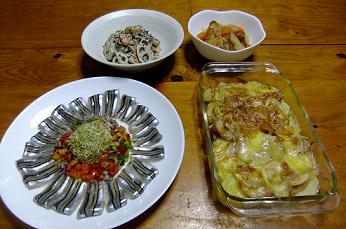 更新する時間がないので、パソコンに取り入れた写真からupします~ある日のパパのお昼ご飯「きびなごの南蛮漬け」「明日葉とツナマヨ和え」「青パパイヤとゴーヤのきんぴら」です~「きびなごの南蛮漬け」をズーム~生協から届いたので、早速、南蛮漬けにしましたが、丸ごと食べれるから、カルシウムたっぷり~お皿に盛り付ける時に、きびなごの衣が外れてしまっちゃってます~「青パパイヤとゴーヤのきんぴら」をズーム~「青パパイヤ」「人参」「白ゴーヤ」「じゃこ」「インゲン」をごま油で炒め、醤油、砂糖、みりん、酒で味付け、最後に柚子胡椒入り唐辛子をパラリと~「明日葉とツナマヨ和え」は、この日はひじきも加え、鉄分upしてます~「明日葉とツナマヨ和え」パパは、普段、外食が多く、そうなると肉料理ばかり食べてるので、家で食べる時は、ほとんど魚料理を食べさせてます~牛乳も私と同じで飲まないし、骨力upしたかしら台風接近で、全国、かなりの被害が起きていてるようで、私も、午後からのイベント、もしかしたら中止の可能性も~息子は、朝7時の時点で、電車が動いてたので、登校しましたが、帰りが、もしかすると酷い頃なのかも~皆様も、お出かけの際は、くれぐれもお気をつけてください~にほんブログ村 いつも応援して頂き、感謝しておりますとても励みになりますので、ポチをどうかよろしくお願いします~