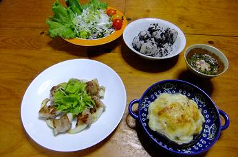 近所のスーパーマルエ〇さんでゲットしました「ポートべラマッシュルーム」で一品作りました~昨夜の晩御飯「ポートべラマッシュルームのグラタン」「豚バラ肉とズッキーニホワイトカスタード巻き」「里芋の胡麻和え」「めかぶ」「野菜サラダ」です~「ポートべラマッシュルームのグラタン」をズーム~中には、「むきえび」「玉ねぎ」「人参」「インゲン」をオリーブオイルで炒め、塩、胡椒で味付けし、ホワイトソース(手作り)、ピザ用チーズをのせて、オープントースターで約8分焼き上げました~ポートべラマッシュルームは、肉厚のきのこなので、レンジで予め加熱後、オリーブオイルでソテーし、塩、胡椒で味付け後白ワインを振りかけ、蒸し焼きしてます~半分にスライスしたところ~肉汁、いえいえ、きのこ汁、じゅわ~っと、美味しさが~かなり、きのこ~っという味わいがするので、きのこが苦手な方は...パパも息子も「まいう~」と久々に雄叫びが~「豚バラ肉とズッキーニホワイトカスタード巻き」をズーム~「ズッキーニホワイトカスタード」は、初めて買いましたが、食感は、ズッキーニ同様、歯応え感があり、味は淡白なので、色んな料理に使えそうです~豚バラ肉を巻いてみましたが、ジューシーで美味しいです~味付けは、クレイジーソルト&ブラックペッパー~ホワイトセロリを中央に飾ってます「ポートべラマッシュルーム」&「ズッキーニホワイトカスタード」様久々に珍しいお野菜を堪能でき、大満足でした~昨夜の「秘密のケンミンSHOW」で、長崎の「トルコライス」が紹介されたみたいで、私は、録画してるので、まだ見てませんが、何だか、ちょっと嬉しいなあ~昨日のブログに、たまたま載せた「トルコライス」ですから~今日は、野菜が少なく寂しくなったので、買い物に行ってきま~す~P.S つくれぽしてくださった方のご紹介、明日させて頂きますね~にほんブログ村 いつも応援して頂き、感謝しておりますとても励みになりますので、ポチをどうかよろしくお願いします~