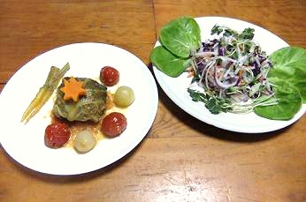 土曜日に買い物に行くと、久々に珍しいお野菜をゲットでき、早速料理しました~昨夜の晩御飯「サボイロールキャベツ」「野菜サラダ」です~買ったお野菜はこちら「長野産サボイキャベツ」「千葉産葉付きイエローミニキャロット」です「サボイキャベツ」、ちょい前にレシピブログでお世話になっているカナダ在住のhannoahさんも、「豚と栗の丸ごときゃべつ蒸し」という素敵なお料理されていて、栗好きの私にはたまらなかったですが、まだ、ちょっと、栗はお高いので、冷凍トマトソースで簡単に仕上げました~でも、こちらのお料理も、とっても、食べたいで~す~「サボイロールキャベツ」をズーム~数年前に西洋野菜を福岡の農家の方からお取り寄せしてから、「サボイキャベや」を知りましたが、近所のスーパーでも売られていて、煮込むと、本当、美味しいんです~「イエローミニキャロット」「プチオニオン」「ミディトマト」を手作りトマトソースで煮込みました~最後に人参を飾ってますロールキャベツの中は、「合挽肉」「玉ねぎ」「人参」「舞茸」、つなぎに「粉末高野豆腐」を使用しましたが、手作りトマトソースにも、「フレッシュトマト」「にんにく」「玉ねぎ」「人参」「生シイタケ」を使用しているので、かなりお野菜いっぱい摂れました~昨日は、休日出勤のパパで、息子と二人の夕食でしたが、息子も大喜びで食べてくれました~「野菜サラダ」をズーム~使用したお野菜は、「サラダ菜」「人参」「ア―リレッド」「カイワレ大根」「オクラの新芽」「紫キャベツ」「人参」「大根」「サニ―レタス」が欲しかったですが、なんと、某スーパーで、1/2個で298円でした~ちなみに↑の「サボイキャベツ」、こんなに大きくて298円ですよ~でも、こちらのキャベツは、生ではちょっと硬くて食べれないかな~土曜日に食べたケーキ「アンリシャルパンティエ」さんの「プディングシュ―」と「Cキューブ」さんの9/15発売になったばかりの新作ケーキですが、私は「モンブランのトルタ」を食べましたが、スポンジがふわふわでたまらなく美味しい~パパは「チョコレートのトルタ」を、息子は「チーズのトルタ」を食べました~これで、また1週間、頑張れそうです~今週は、明日、明後日とお出かけの用が入っているので、今日は、家でゆっくり充電してま~す~特に明後日は、都内の某イベントに参加するので、今から、とっても楽しみ~勿論、ブログにて、後日、ご紹介させて頂きますね~上野散策の記事、もうしばらく、お待ちくださ~い~にほんブログ村 いつも応援して頂き、感謝しておりますとても励みになりますので、ポチをどうかよろしくお願いします~