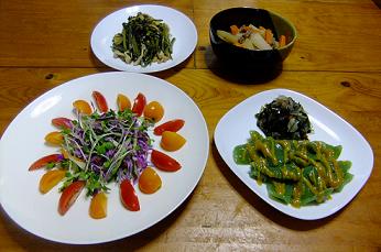 昨日は、一日、出たり入ったりのバタバタで、ゆっくりとニュースを見る暇もなく、台風の行方が気になってますが、逸れたのかなと思ってたら、まだ、まだ...昨夜、かなりの大雨で、気になり睡眠不足~大きな被害がない事を祈るばかりです~昨夜は、無性に野菜が食べたくなり、メインはお野菜で、合挽肉少々使用という献立~昨夜の晩御飯「大根とにんじんのコンソメ煮」「空芯菜とブナピー炒め」「野菜サラダ」「刺身こんにゃくと海藻サラダ」です~「野菜サラダ」をズーム~トマトは、「イエローミミ」と「シシリアンルージュ」を使用しましたが、トマトがとっても、美味しいです~中央のお野菜は、「カイワレ大根」「きゅうり」「紫キャベツ」「レッドオニオン」イタリアンドレッシングかけて頂きました~「大根とにんじんのコンソメ煮」は、合挽肉少々を加え、コンソメ、醤油で煮てます野菜たっぷり食べれて、大満足です~先週の土曜日の「世界弾丸トラベラー」で、南イタリアを放映されてましたが、あああ...やはり、イタリア、素敵なところですね~ハワイばかり行っている私ですが、ヨーロッパも興味あるんですよ~イタリア・フランス、この二つは、ぜひとも行ってみたいと思ってます~ただ、飛行時間も長いし、ゆっくりと周りたいのもあり、パパがリタイアしないと行けないかな~まだまだ、先の話ですね~鬼奴さんと弥生さんが、美味しそうな「マルゲリータ」を食べてるのを見てたら、またピザが食べたくなりましたよ~朝から、かなり蒸し暑く、今、雨も降ってきました~皆様もお出かけの際は、お気をつけて~昨日の「ポテトとじゃこのチーズ焼き」のレシピはこちらから~にほんブログ村 いつも応援して頂き、感謝しておりますとても励みになりますので、ポチをどうかよろしくお願いします~
