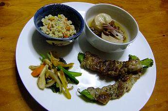 昨日は、またまた息子と二人の夕食なのもあり、ワンプレートにしました~昨夜の晩御飯「豚バラ肉の四角豆(ウリズン)巻き」「高野豆腐の炒り煮」「小松菜のチャンプルー」「京芋の揚げ出し」です~「豚バラ肉の四角豆(ウリズン)巻き」をズーム~沖縄産の四角豆、普通のインゲンと同じ感覚で調理できるようなので、息子が大好きな豚バラ肉を巻き、味付けは、先日の「サラダエレガンス」に「ブラックペッパー」を少々加えましたが、食感がシャキシャキしていて、息子も私も大好きなんですよ~虫が付きにくく、無農薬で栽培されてるみたいなので、安心度は高いですね~「京芋の揚げ出し」をズーム~久々に「京芋」が売られてたので買ってきましたよ~息子も大好きなので、早速、揚げ出しに~「京芋」は、片栗粉を塗して揚げ、なめこ入りの餡をかけ、みょうがを飾ってみました京芋の中は、ホクホク~、外はカリカリとたまらない美味しさ~こういうおかずは、ホッと和みますね~「京芋」&「四角豆」様「小松菜のチャンプルー」をズーム~「小松菜」「人参」「ぶなぴー」「黄カラーピーマン」「玉ねぎ」を炒め、味付けは、めんつゆ、塩、胡椒のみで、今回は、卵なしで、最後に桜エビをトッピングしました~似たバージョンのレシピを登録しているので、こちらもどうぞ~「からし菜と仙台麩のチャンプルー」「高野豆腐の炒り煮」をズーム昨日は、しらす干しを加えて、またまたカルシウムupを狙ってみました~栄養満点の高野豆腐なので、定期的に作って食べてますが、こちらの容器、見覚えないですか以前、「新宿タカノ」さんのケーキを買った際にプリンが入ってた容器なんです~うさぎさんの絵が付いていて、とても可愛いので、再利用してま~す~「高野豆腐の炒り煮」昨日、アメリカ在住のお友達が帰国されていて、素敵なお土産を買ってきてくださり、宅配便で届きました~まだブログにupして良いのか、了解頂いたら、upさせていただこうかと思います~今日も朝から晴れていて、お洗濯日和です~9月も明日で終わりですね息子の学校の文化祭、今週の金・土なんですが、「来なくて良いよ~」ですって~去年は、役員していたのと、義母も息子の高校を見てみたいというので、お休みだったパパと3人で行きましたが、意外と、親もいましたけれどね...ちょっと寂しいですが、これも親離れの一つでしょう~昨日の「ポテトのチーズ焼き」を登録しましたのでご興味ある方はこちらから~にほんブログ村 いつも応援して頂き、感謝しておりますとても励みになりますので、ポチをどうかよろしくお願いします~