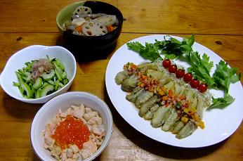 昨日は、パパも帰りが遅いが家で食べるというので、生協から届いた「きびなご」を早速、カルパチョに~昨夜の晩御飯「きびなごのカルパチョ」「ポテトのチーズ焼き」「れんこんサラダ」「大根とさつま揚げの煮物」です~「きびなごのカルパチョ」をズーム~中央に盛り付けたお野菜は、「アーリーレッド」「カラーピーマン3種」「ピーマン」「アルファルファ」ですが、手作りのジェノペーゼソースにオリーブオイル、白ワインビネガー、ハワイアンソルト、ブラックペッパーを混ぜ合わせたドレッシングで和えましたきびなごに巻いて食べましたが、う~ん、美味しいで~す~きびなご5匹で、一日のカルシウム量が摂れると聞いたので、また、食べたいなあパパも息子もきびなご様が大好き~「れんこんサラダ」をズーム~味付けは、すりごま、マヨに練りゴマペーストを少々加えてますひじき・ゴマ入りなので、カルシウムもたっぷり摂れました~外食が多いパパに、こういう滋養たっぷりの食材をどんどん食べさせなくっちゃ~「ポテトのチーズ焼き」をズーム~これは、息子がかなり大好きなので、ほとんど一人で食べちゃいます~芋兄ちゃんですよ~こちらのレシピは、後日載せますね「大根とさつま揚げの煮物」をズーム~本当は、切干大根の煮物にしようと思ってましたが、在庫がなくて、急遽、半端な大根をスライサーにかけ、これまた半端に残ってたさつま揚げと煮ましたが、千切りにした分、早く煮えましたよ~お弁当にも次回、多めに作って入れる予定~先日の上野散策の写真、まだまだupしてないのもありますので、ちらっと~上野公園、息子が小学生の頃に某テレビ番組に3年間出演させて頂いた事があり、その際に上野駅近郊で撮影もしましたが、それ以来に行ったので、懐かしさ一杯でした~蓮のお花、あちこちに咲いてましたよ~にほんブログ村 いつも応援して頂き、感謝しておりますとても励みになりますので、ポチをどうかよろしくお願いします~