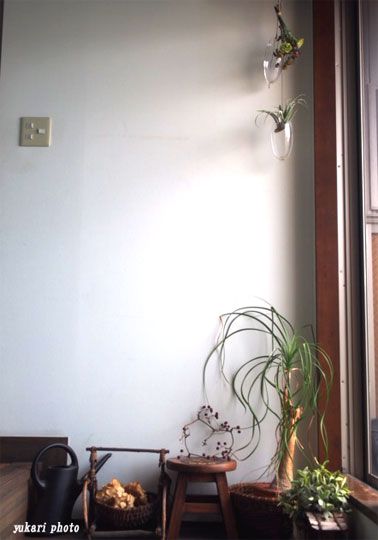 白い壁にグリーンやお花があるだけでまるで絵のようで、お気に入りのスペースです。