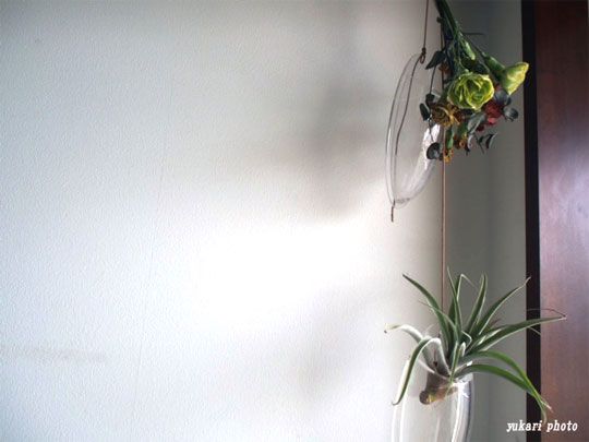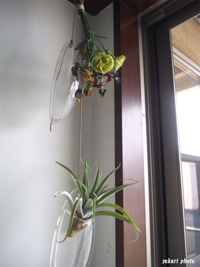 3階の階段の踊り場部分のグリーンコーナーのエアープランツと一緒に、吊るしました。