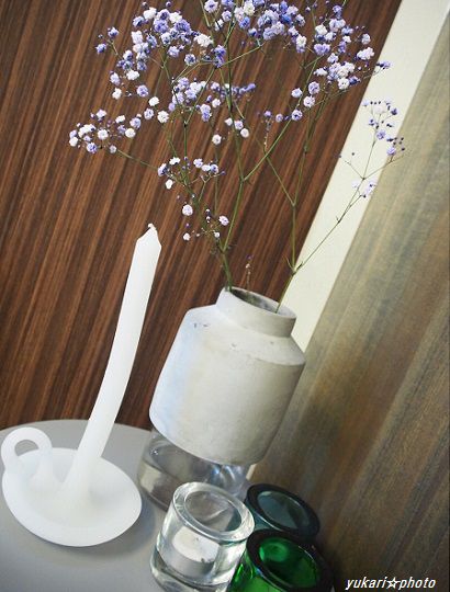 仏花用の花器は小さいのでかすみ草はかなりあまって、リビングにも飾りました。