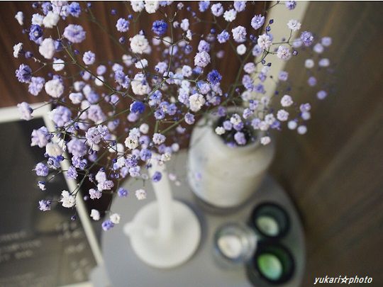 かすみ草は白じゃなきゃダメと思っていたんですが、こういう時は白じゃない方がいいかなと、試しに買ってみました。