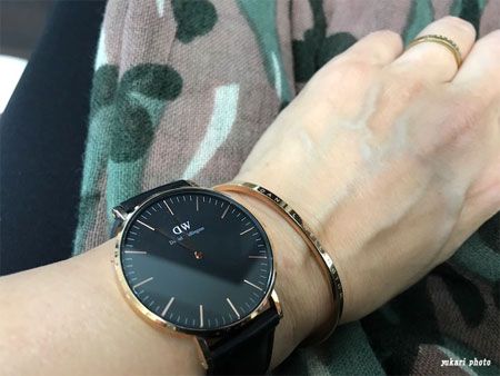 時計とバングルはダニエル・ウェリントンをチョイス。