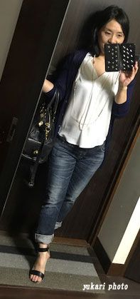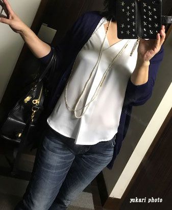 デニムでもラフになり過ぎないように、パールとビーズのロングネックレスで少し綺麗目なコーデを考えたつもりです。