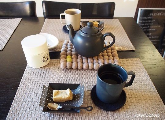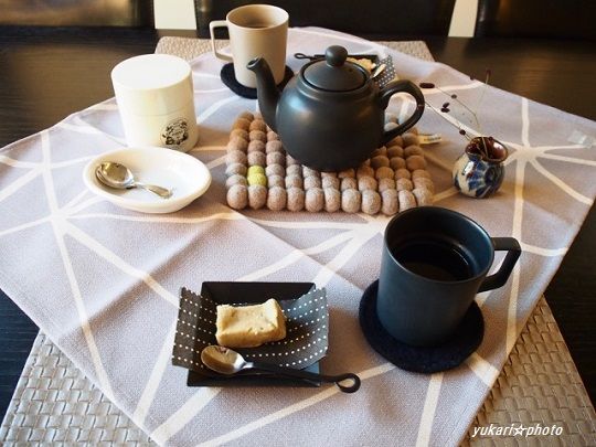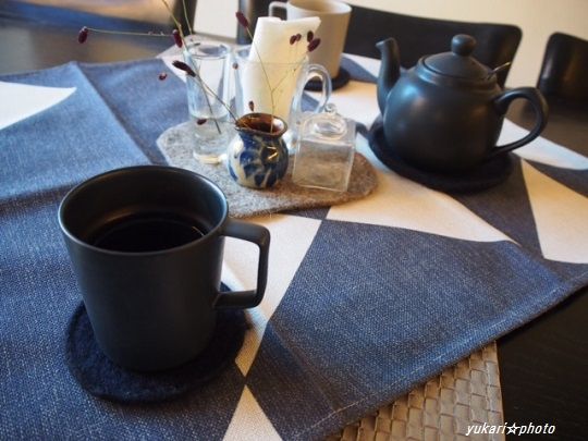 ちょっと秋っぽく、暖かみのあるティーマットにのせてみました。