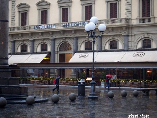 フィレンツェのホテルより「ウフィツィ美術館」に行く途中で見つけた広場の回転木馬とカフェです。