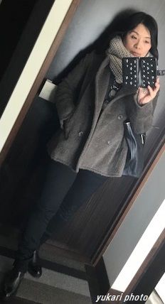 ユニクロのグレーのカシミアセーターに数年前のセールで買ったMarc by Marc Jacobsのハーフコートに今日もINEDのスヌードを合わせて。