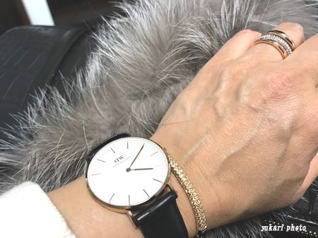 時計はDaniel Wellington、リングとバングルはイタリアで買ったSwarovski。