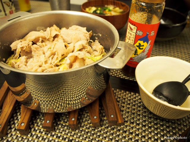 七味ポン酢を使って、豚肉と白菜の酒蒸しをした日。