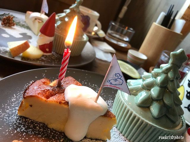 友人と「メリークリスマス」と言いながらろうそくの火を消しました。