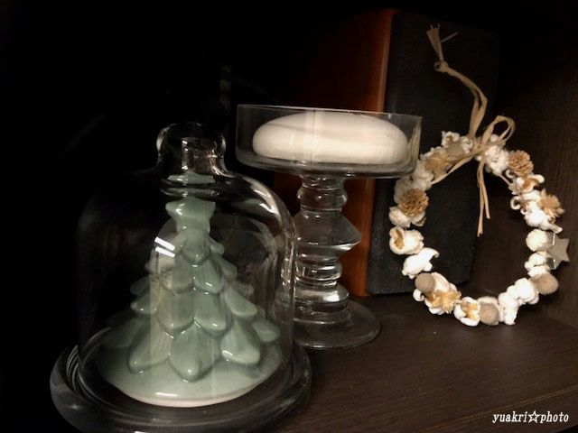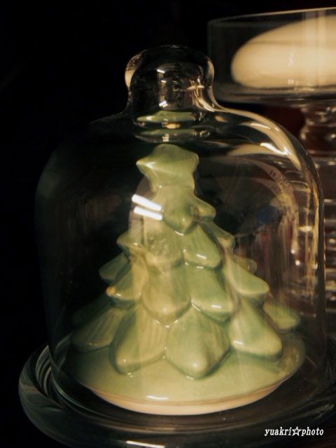 頂いたツリーの陶器は小さなガラスドームにぴったりと収まりました。