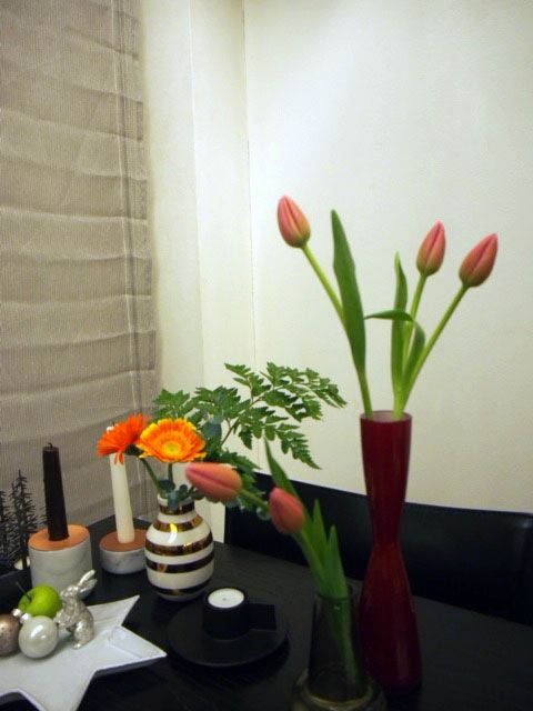 玄関用、トイレ用にはチューリップを、ダイニングテーブルの上にはガーベラを。