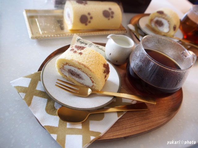 3時のおやつは彼女が持ってきてくれた可愛いロールケーキをいただきました。