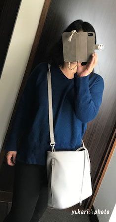 それにアイスグレーのショルダーバッグを合わせて。