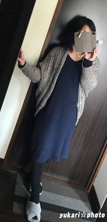 ニットワンピは薄手なので、カーディガンを羽織ってちょうどいいぐらいです。