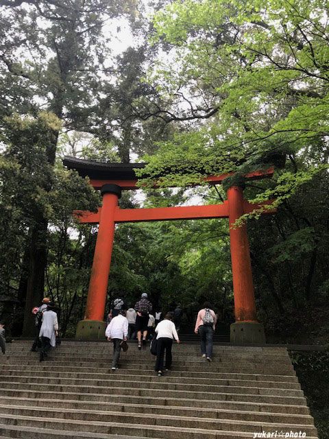 上宮、下宮という順にお詣りするということで、まずは上宮をお詣りするのに階段を上って行きました。
