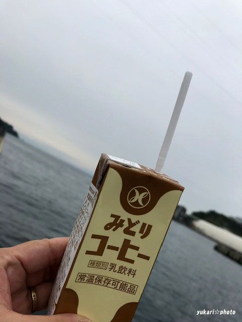 海を眺めながら、スーパーで買った九州産のコーヒー牛乳を飲みました。