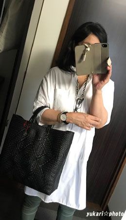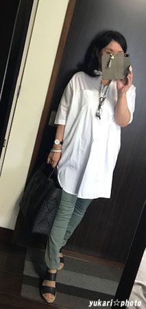 夏はヒップ回りを隠してくれるチュニックシャツがヘビロテです。