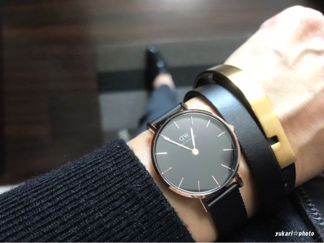 同じブレスレットに手持ちのDWの腕時計をするとかっこいい感じに。