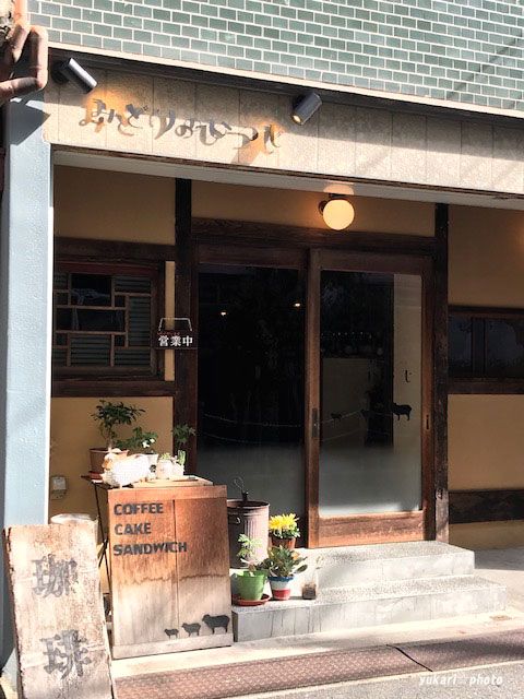 可愛い羊の絵のガラス戸が目印のカフェです。