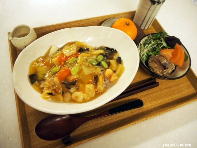 たまに昼間に食べている冷凍品ですが、こちらは黒米を半膳ぐらいにしてその上にかけ、さらにからしとお酢でいただきます。
