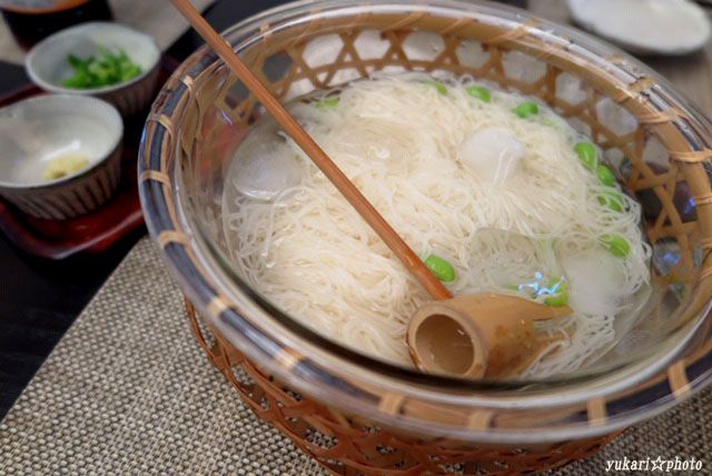 素麺に茹でて冷凍している枝豆を入れて。
