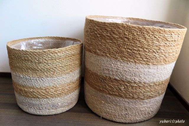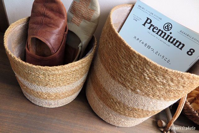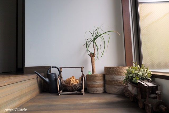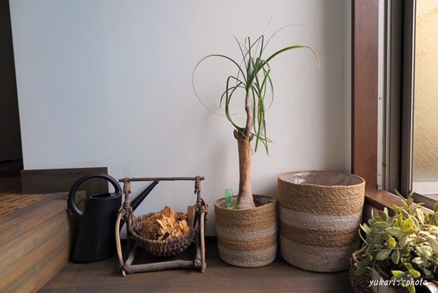 ルームシューズや雑誌などを入れてもいいけれど、内側がビニール張りになっているので観葉植物を入れることにしました。