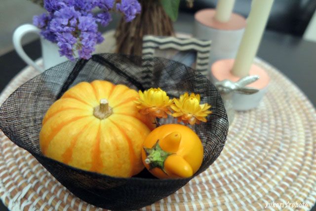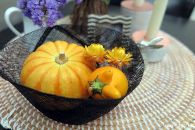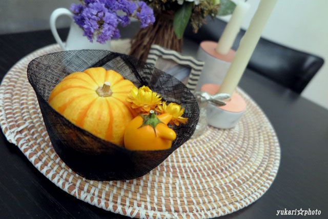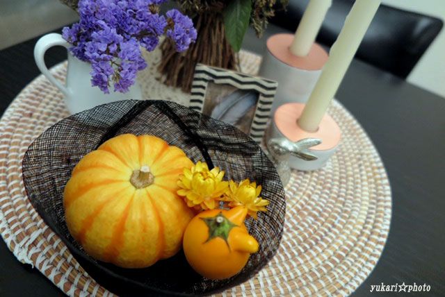 ブラックのバスケットに入れて、ハロウィンっぽく。
