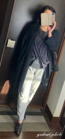 コートを羽織ると、一番シンプルなコーデになるのかな。。
